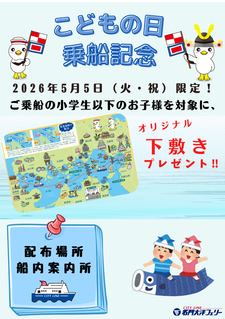 2026年5月5日(火・祝)「こどもの日」出航便にて、